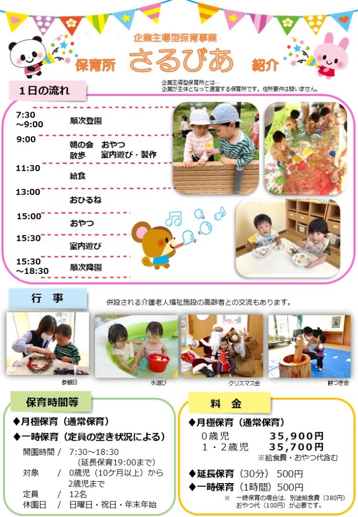 ご見学含めたお問い合わせにつきましては、保育所さるびあへ直接ご連絡ください。