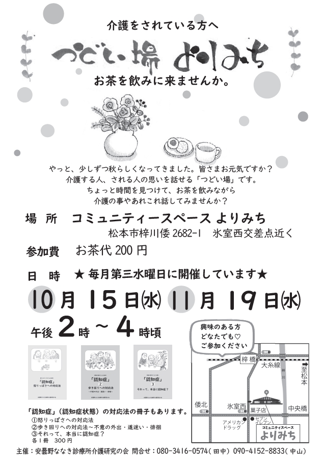 ゆったりと継続しております「つどい場よりみち」ですが、10月の開催日程が決まりましたのでお知らせいたします!
