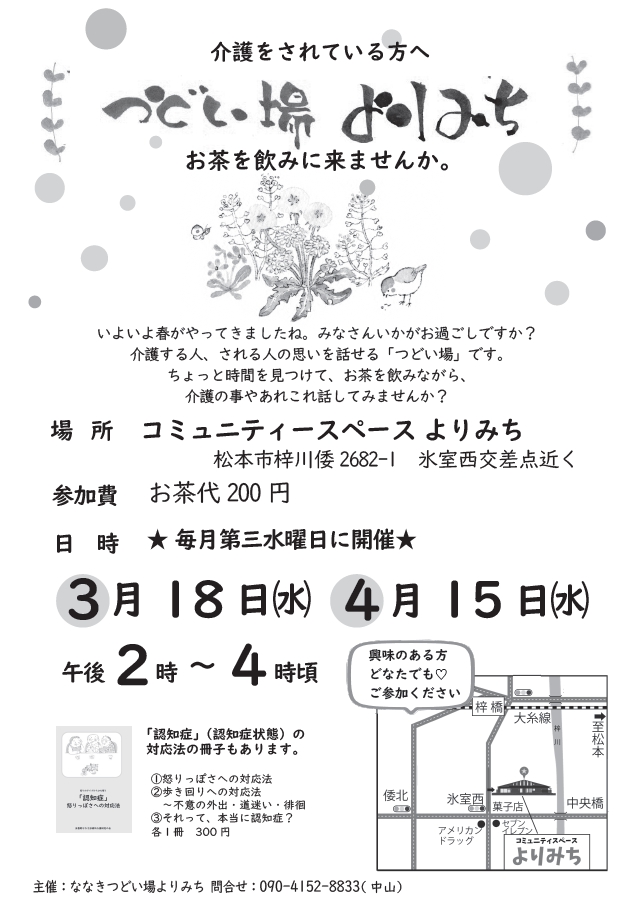 介護する方・される方がそれぞれの気持ちを気軽に話し、共有し、理解しあい、明日からの介護につなげていくことができる場をつくりたいという想いから始まる新たな取り組みです。